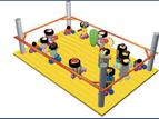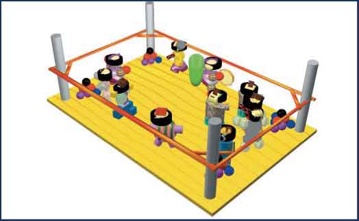 Lag en innhegning ved f.eks bruk av tau. Klessnor egner seg godt og er rimelig i innkjøp. I hvert hjørne er det lurt å sette opp et eller annet som hindrer utøverne i å gå på stolpen. I illustrasjonen er det brukt et skråtau.