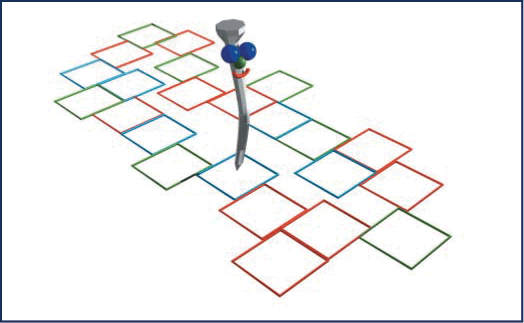 Dette er en koordinasjonsøvelse som krever endel trening. Hjernen har vanskelig for å kombinere symmetriske og asymetriske bevegelser. Ved å bestemme hvilket ben som skal i hvilke ruter kan vi provosere fram en kombinasjon av symmetri og asymmetri.