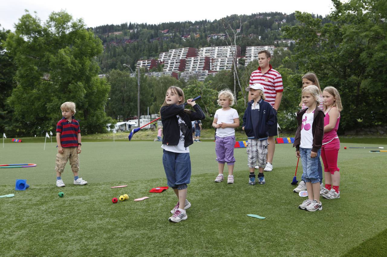 Barna sprer seg ut over treningsområdet og har med golfbagen sin. Denne plasseres på bakken. Når treneren roper "bytt bag", skal barna løpe til en annen bag.