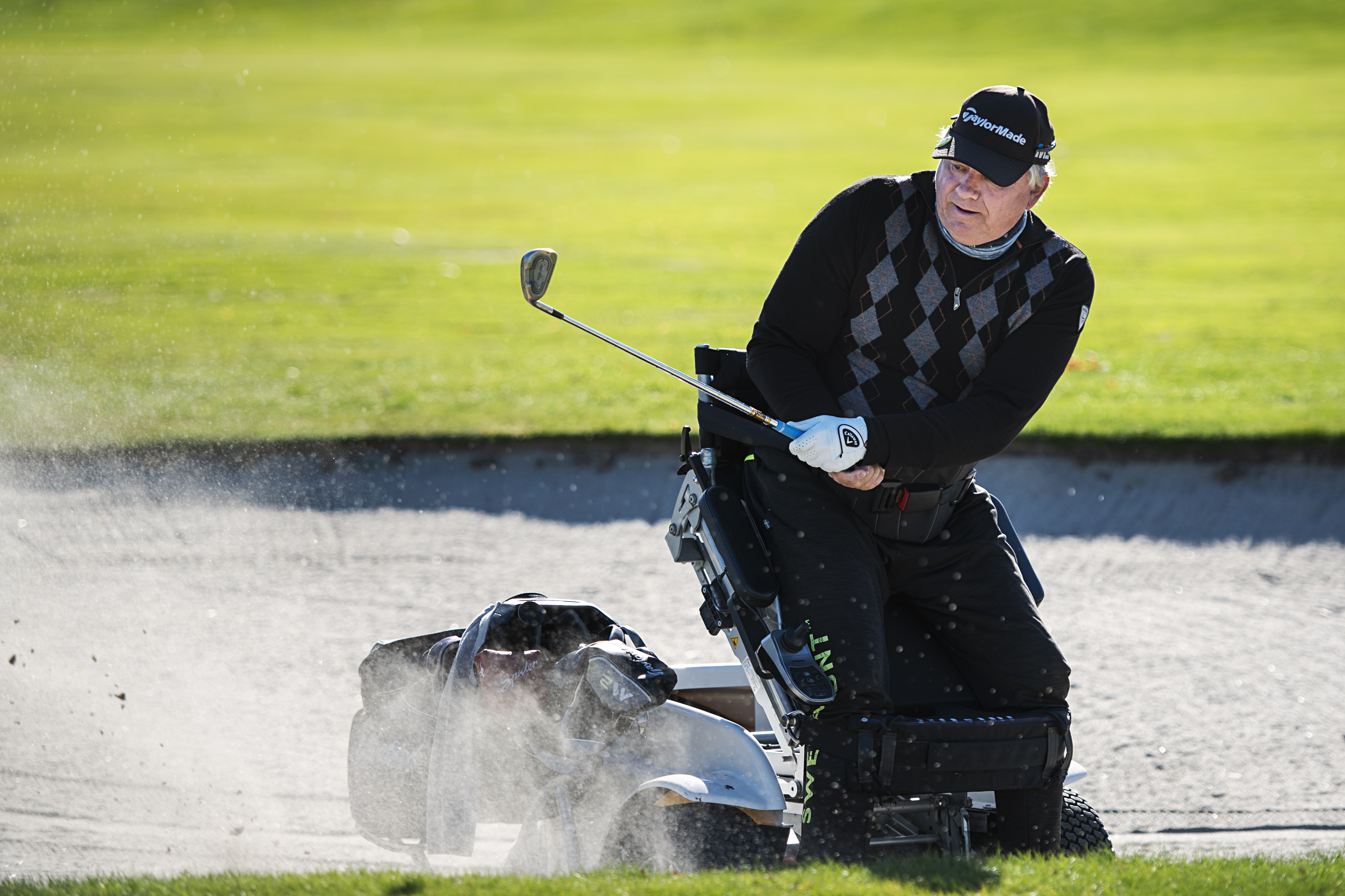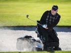 Det er sanden som skal løfte ballen ut av bunkeren.