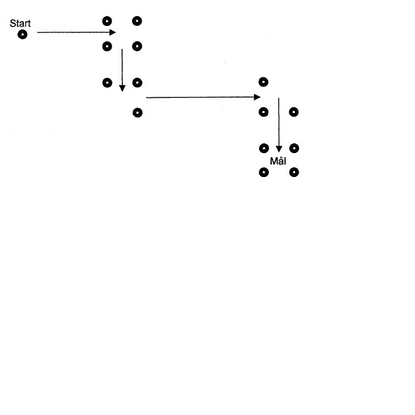 Labyrinten begynner ved startkjeglen. Slå ballen inn i den første firkanten. Ballen må gå inn i firkanten gjennom den riktige porten. Ballen må bli liggende i ro før du kan slå den videre gjennom de riktige kjeglene. Ballen må alltid puttes inn riktig vei. Er du uheldig og putter for langt, må du putte tilbake slik at du putter inn riktig vei.