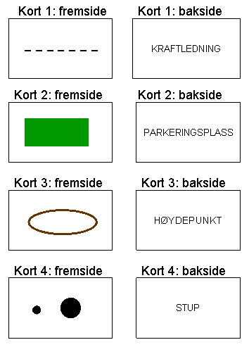 Skriv ut kartene som ligger som vedlegg – 4 av hver løype A-F. Bygg "landskapet" og legg ut de 9 postskjermene ved å se på "Gymsalkart med alle poster". Plasser klypene på postene ved å se på "Gymsalstafett, oversikt klyper og fasit".