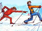 Ballongen festes til langrennskjelken. Utøver bruker staver til å sprekke andres ballong