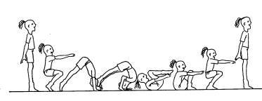 Variant 2 er en sitter på huk, makker hopper over og krabber tilbake gjennom bein i "stiv heks" posisjon.
