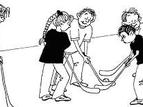 Spill bandy med to lag, to mål, innebandykøller og -ball.