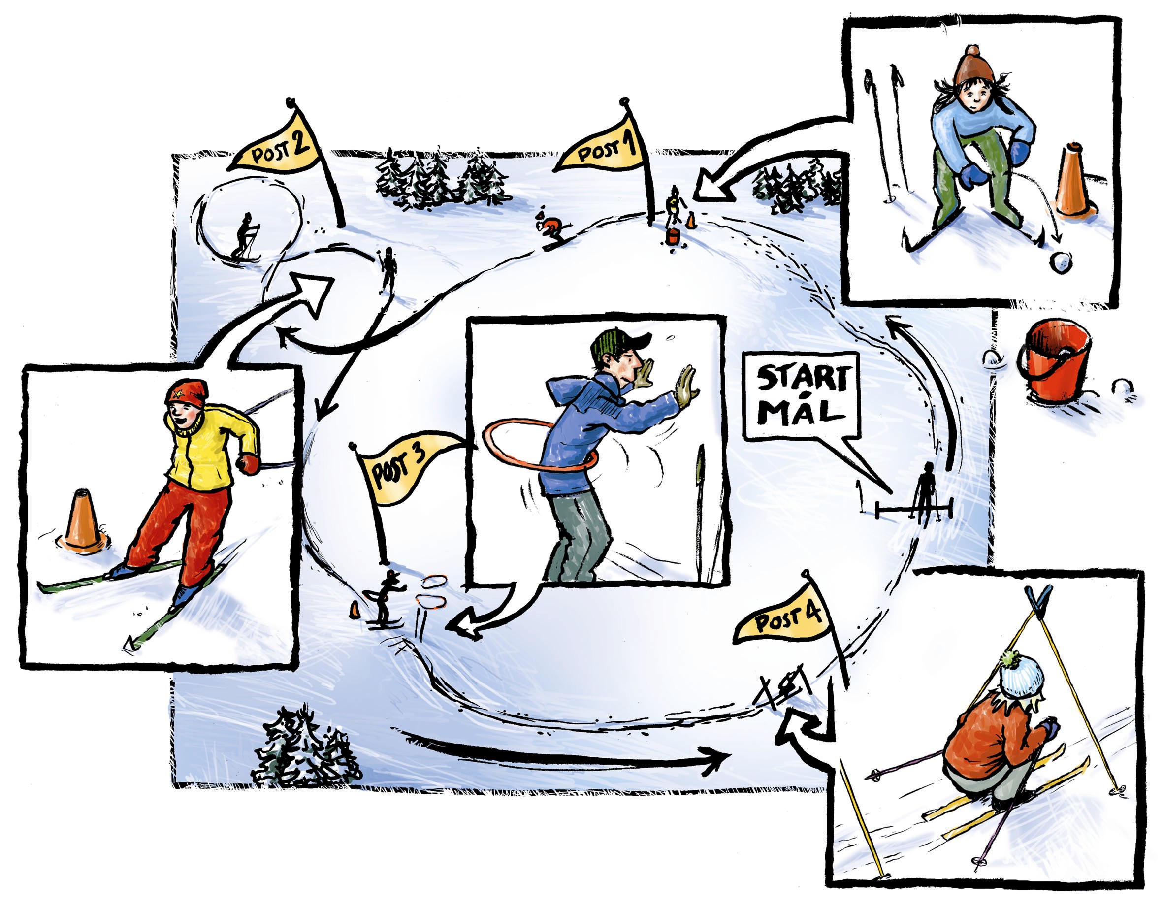 Lag ei rundløype med ulike oppgaver underveis. Lengden på løypa må tilpasses deltagernes alder og ferdigheter.
