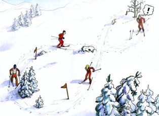 - forfølgelsesritt (mange i løypa, viktig med bredt spor)