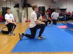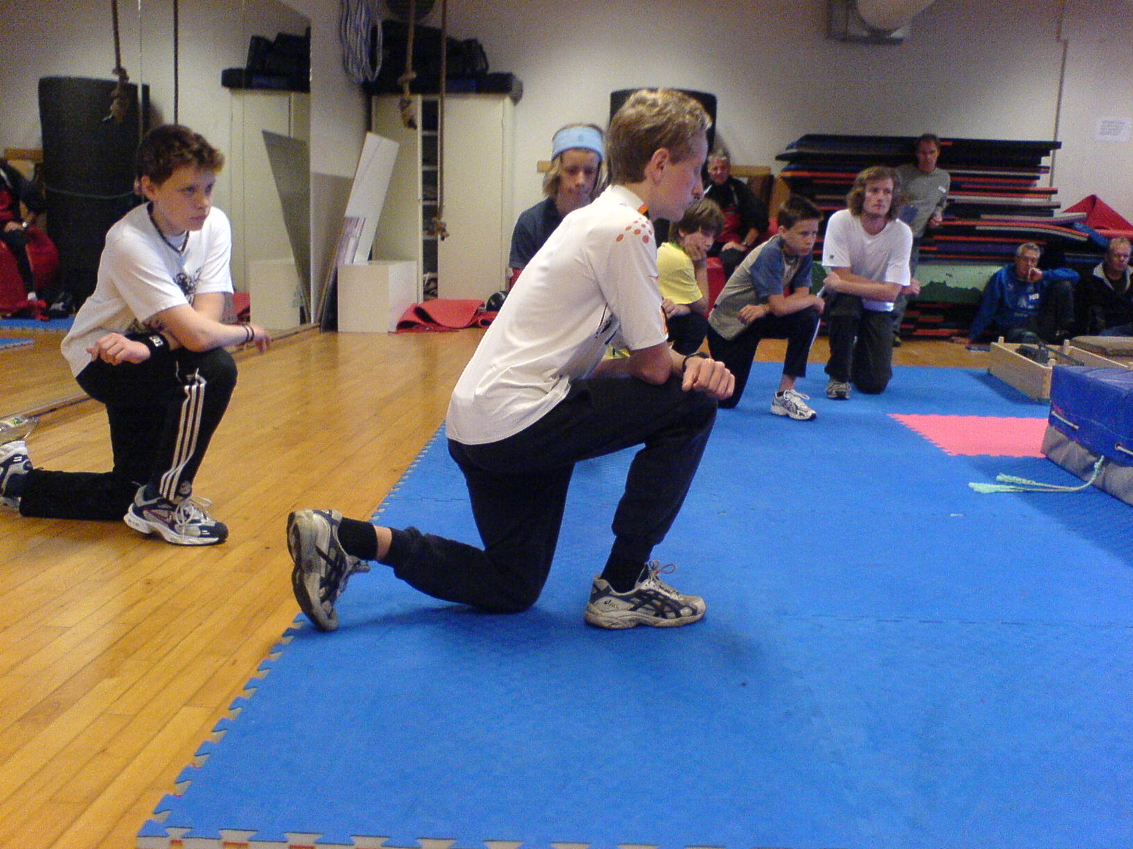 Stå på ett kne med den andre foten foran med fotsålen i gulvet.
