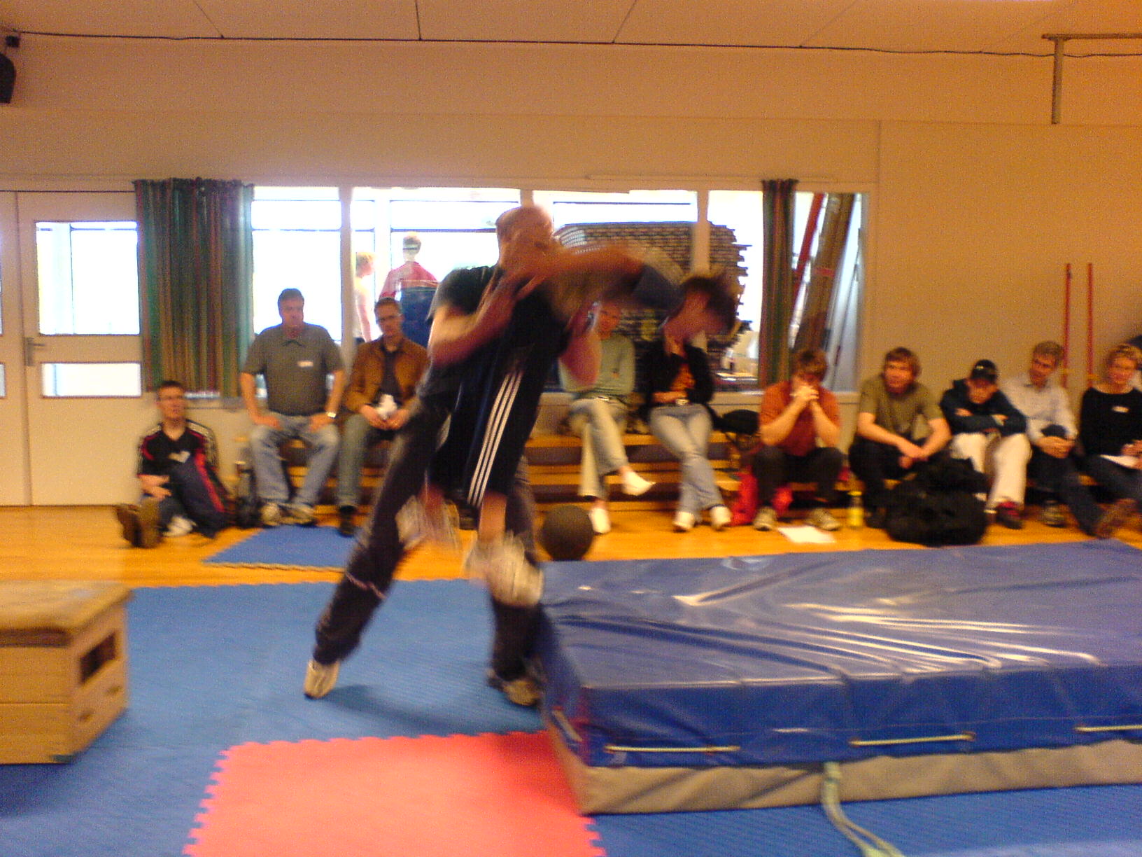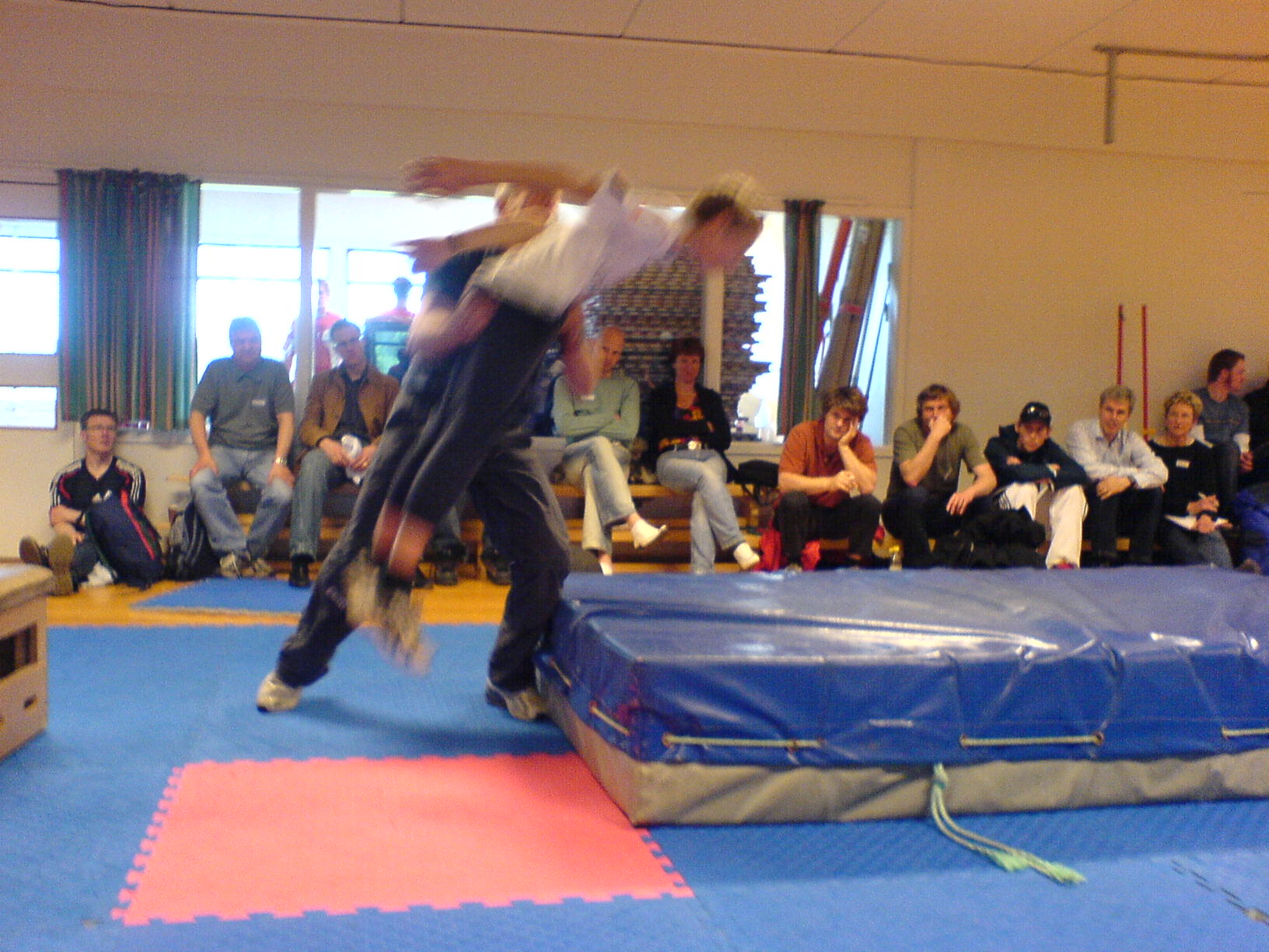 Gå ned i sittestilling foran tjukkasen, og skyv ut og land på tjukkasen.